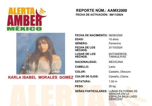 Menor de 15 años que el 13 de octubre en Matamoros Tamaulipas