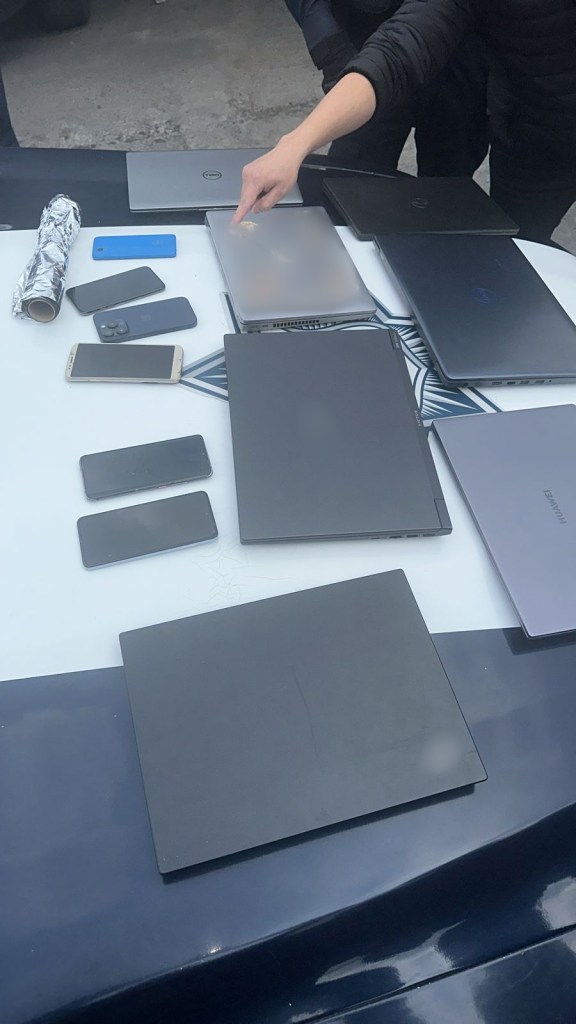 Durante la intervención y revisión que los policías realizaron a los sospechosos, se logró recuperar aparatos celulares y computadoras portátiles, aparentemente propiedad de los clientes de la cafetería donde se registró el acto delictivo.
