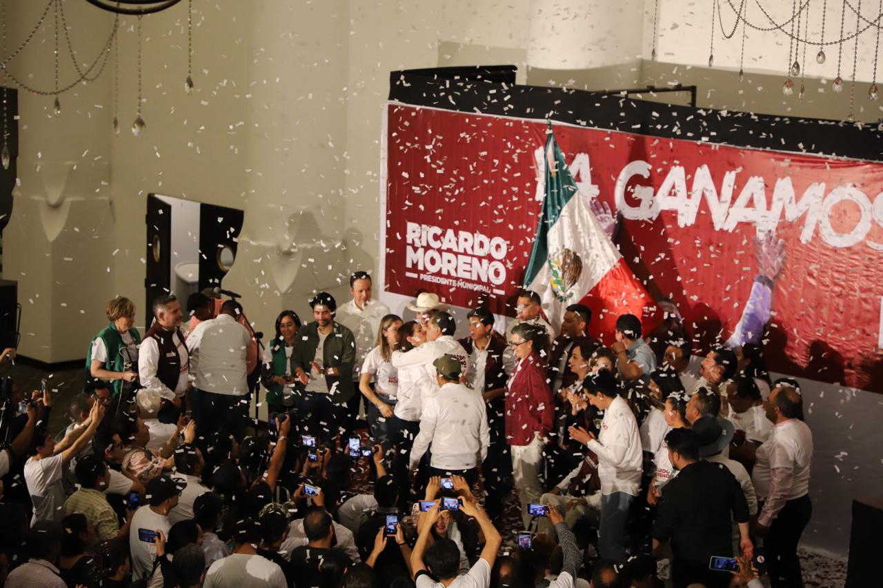 El virtual triunfo de Ricardo Morena Bastida registrado el domingo 2 de junio coincide con su cumpleaños, por lo que la madrugada de este lunes en el festejo registrado en el salón de un hotel ubicado en la entrada a la comunidad San Lorenzo Tepaltitlán estuvo amenizado con mariachis.