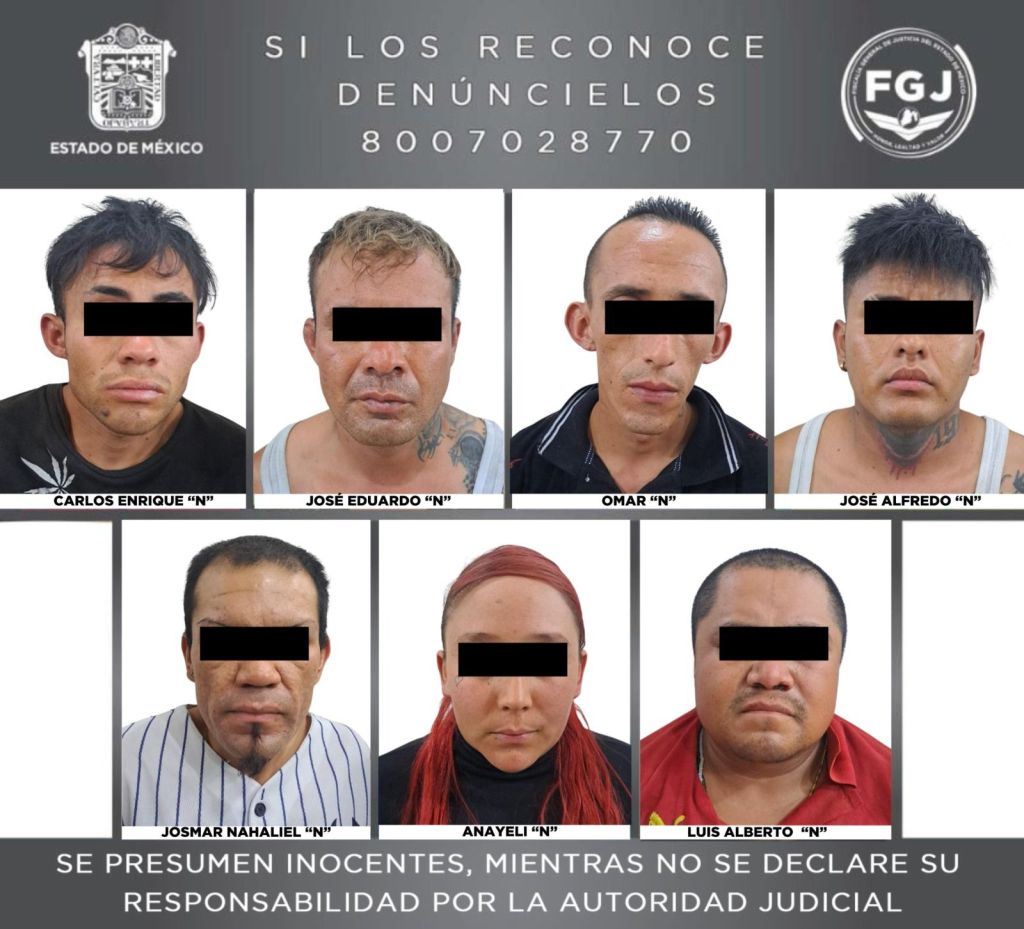 Fueron identificados como Josmar Nahaliel “N” “N” alias “El Depilado”, de 27 años, Luis Alberto “N” “N” alias “El Seis”, de 34 años, Carlos Enrique “N” “N” alias “El Chiquitín” y/o “El 13”, de 23 años, Omar “N” “N” alias “El Pecas”, de 25 años, José Alfredo “N” “N” alias “El Z” y/o “El Zodeck”, de 25 años, José Eduardo “N” “N” alias “El Dui”, de 33 años y Anallely “N” “N”, presuntos integrantes del referido entramado delictivo relacionado con un grupo criminal con orígenes en Jalisco.