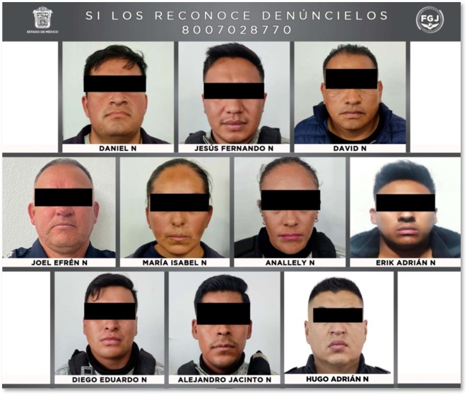 En la amplia y profunda indagatoria participa, con acciones conjuntas y coordinadas, la Fiscalía General de Justicia del Estado de México (FGJEM), Secretaría de la Defensa Nacional (SEDENA), así como la Secretaría de Seguridad y Protección Ciudadana federal (SSPC), a través de la Comisión Nacional Antihomicidio (CONAHO) y Coordinación Nacional Antisecuestro (CONASE) y Guardia Nacional.