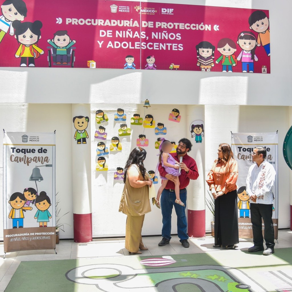 Durante la ceremonia de Toque de Campana, con la que se anuncia que nace una nueva familia, García Morón reconoció el gran trabajo que hace la Procuraduría de Protección de Niñas, Niños y Adolescentes “no solamente en la aportación legal, sino también en actos maravillosos de vida y de corazón que se traducen en el derecho humano de niñas, niños y adolescentes a vivir con el amor, el cuidado y la seguridad de una familia”.