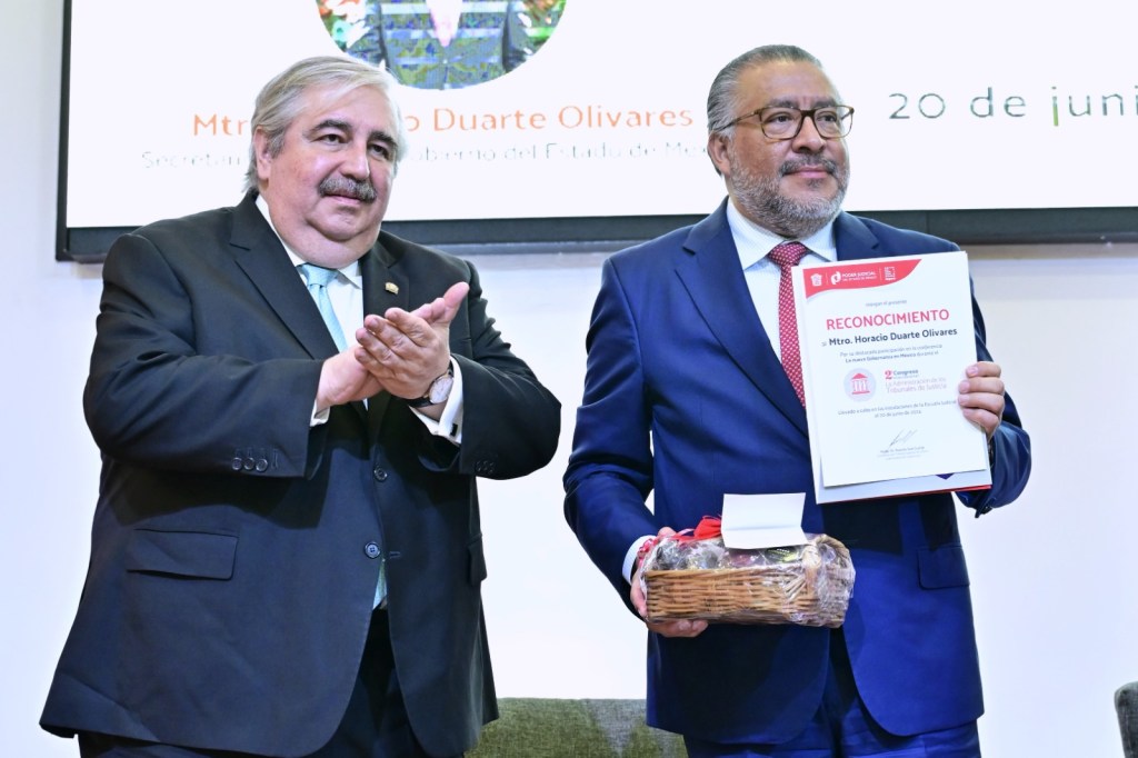 Cabe señalar que, al finalizar el evento, el Presidente Magistrado del Poder Judicial del Estado de México, Ricardo Sodi Cuellar entregó un reconocimiento al Secretario Horacio Duarte Olivares por su participación.