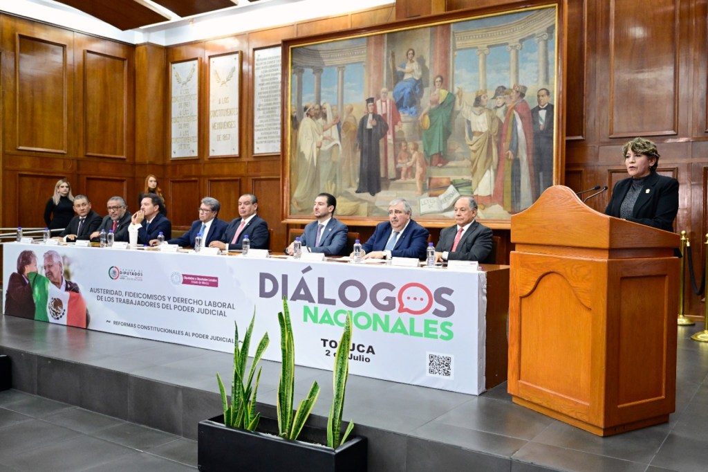Mientras que la gobernadora Delfina Gómez hizo votos para que de estos foros surjan acciones para consolidar una reforma integral y eficaz, con la que se garantice el acceso pronto y expedito a la justicia, que proteja a todas y todos, en especial a personas más vulnerables; además, se pronunció por no afectar los derechos laborales de las y los trabajadores del Poder Judicial.