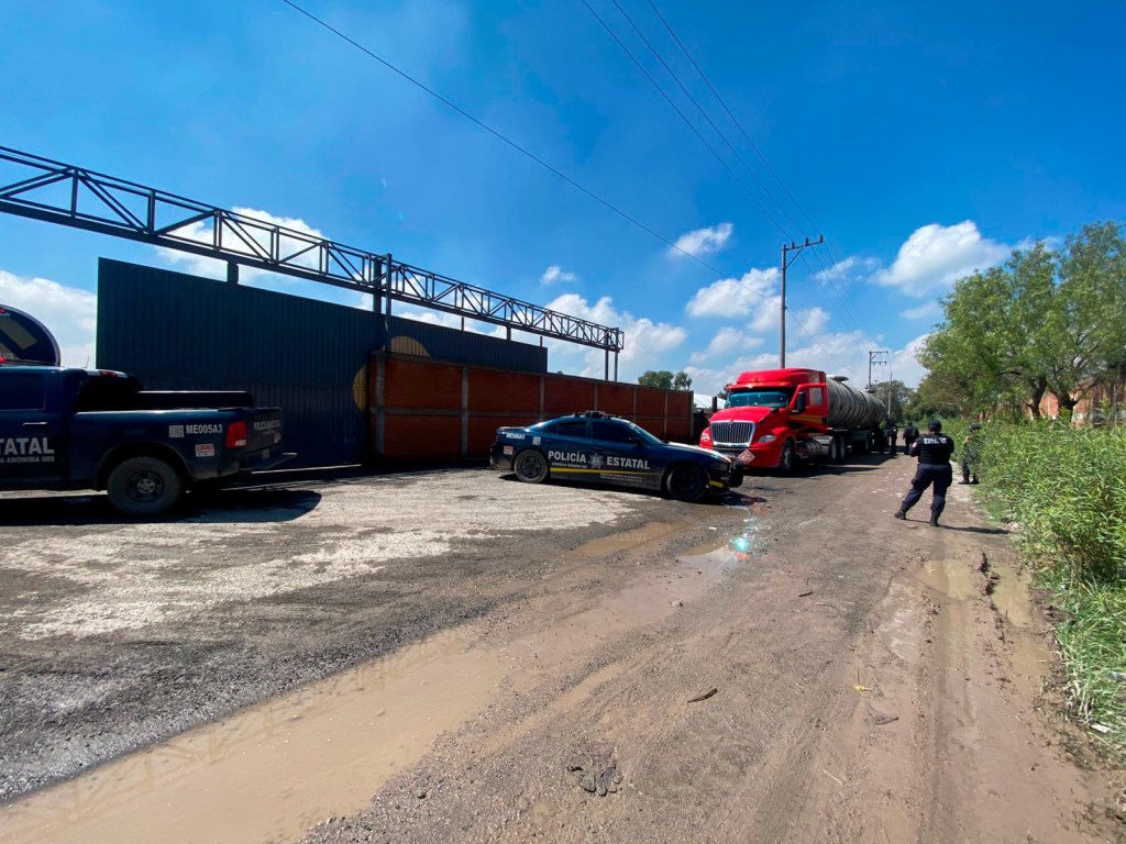 Al descender de la patrulla, los uniformados de la Dirección General de Combate al Robo de Vehículos y Transporte (DGCRVyT) de la SSEM dialogaron con el chofer y en ese momento observaron que al interior del terreno había un tractocamión color rojo con dos tanques con aparente combustible, así como 15 tanques con capacidad de 20 mil litros cada uno. En el sitio, estaban 15 personas a las que se les permitió la salida.