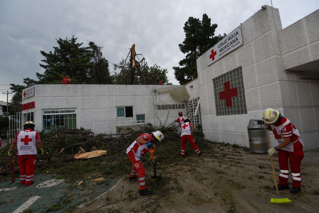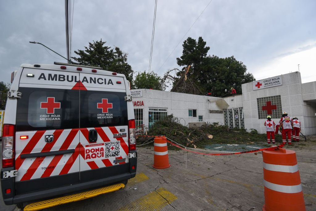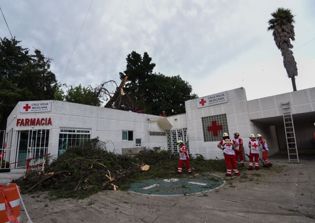 A las 16:12 horas, el árbol cayó sobre la estructura que alberga la óptica, farmacia y el consultorio dental de la representación local de Cruz Roja Mexicana, área en la que no había personas en ese momento, pues quienes están siendo atendidos para la expedición de certificados médicos están utilizando otra ruta por las obras de construcción y ampliación que se realizan en esas instalaciones.