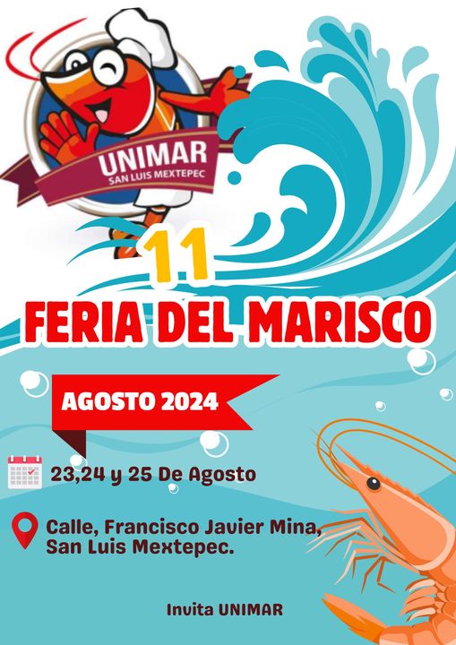 La onceava “Feria del Marisco” a desarrollarse en el barrio de San Luis Mextepec del municipio de Zinacantepec a desarrollarse el 23, 24 y 25 de agosto, contempla, como cada edición, la “Carrera del Marisco” de 5, 7 y 10 kilómetros, mega clase de zumba “ZumbaFest”, competencia el “Rey de la Empanada” donde medirán capacidades maquinas-robots y humanos para elaborar la mejor empanada, así como “Guerra de Chefs” entre Maestros marisqueros y estudiantes de gastronomía de la Universidad Autónoma del Estado de México y escuelas privada que tienen la licenciatura en dicho sector, «Concurso de Música» donde agrupaciones se darán a la tarea de crear la melodía representativa de la festividad.
