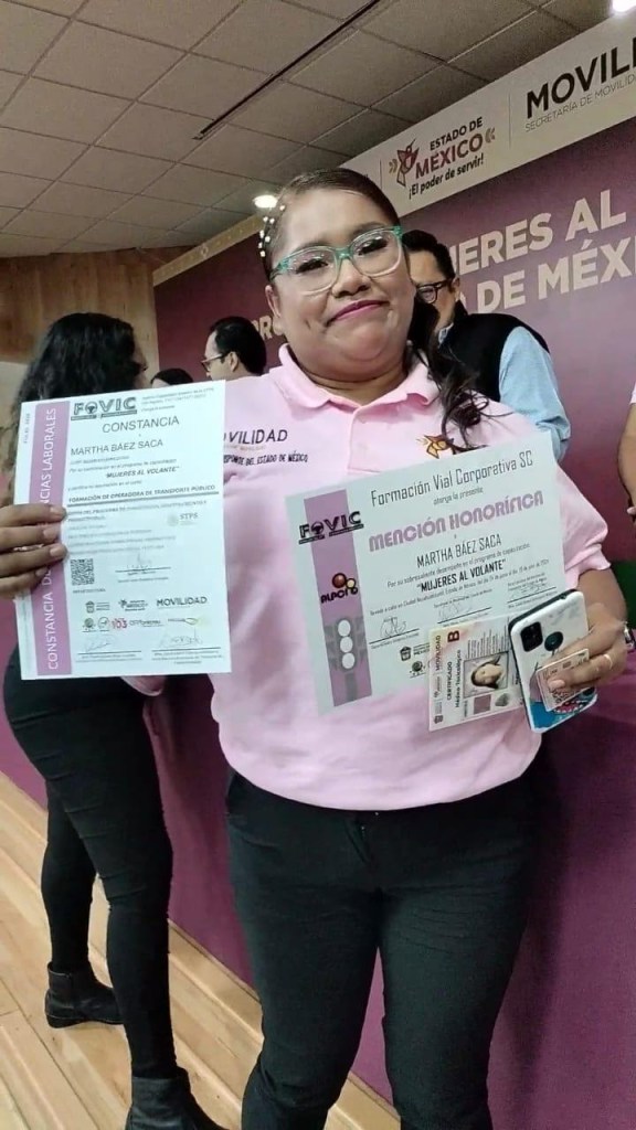 El Gobierno de la Maestra Delfina Gómez Álvarez, a través de la Secretaría de Movilidad, entregó reconocimientos y constancias a las primeras 34 mujeres inscritas en el programa “Mujeres al Volante” que culminaron su capacitación como operadoras de transporte público.