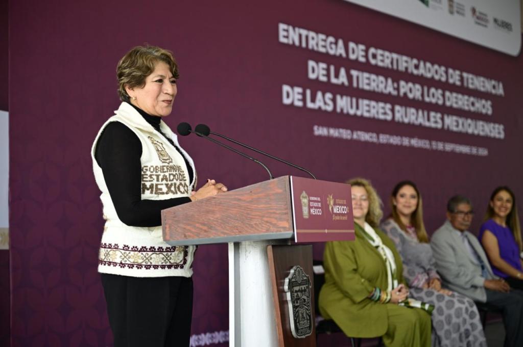“Un certificado da certeza y seguridad, efectivamente a las mujeres rurales que viven en territorio mexiquense, que es un acto de justicia social», afirmó la Gobernadora Delfina Gómez Álvarez.