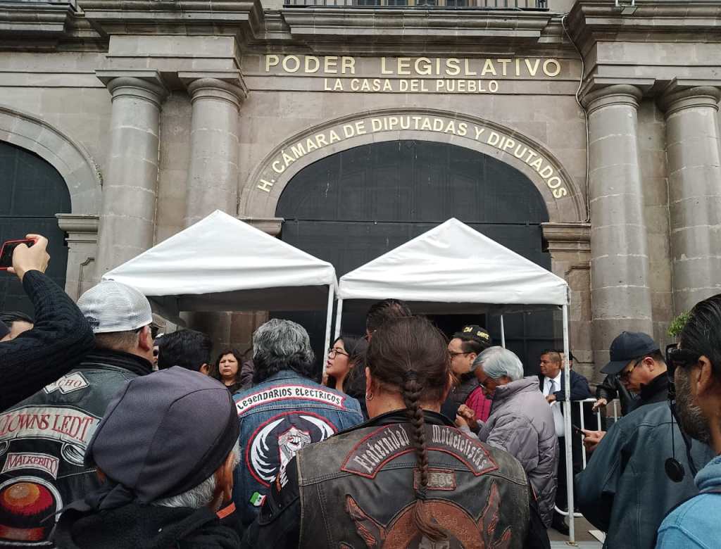 Los destinatarios de la propuesta, motociclistas, se manifestaron frente al Congreso mexiquense para manifestar su molestia y rechazo total a la propuesta.