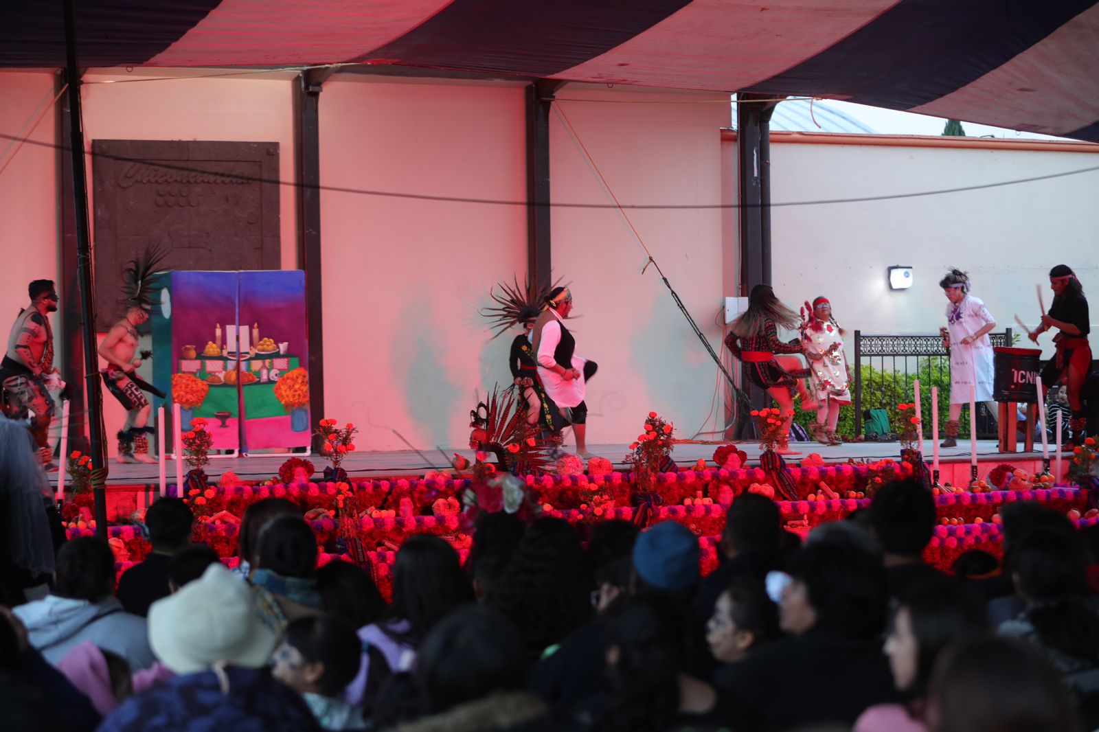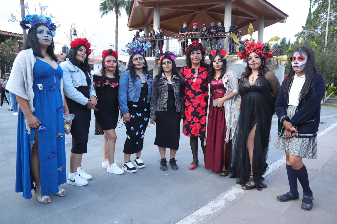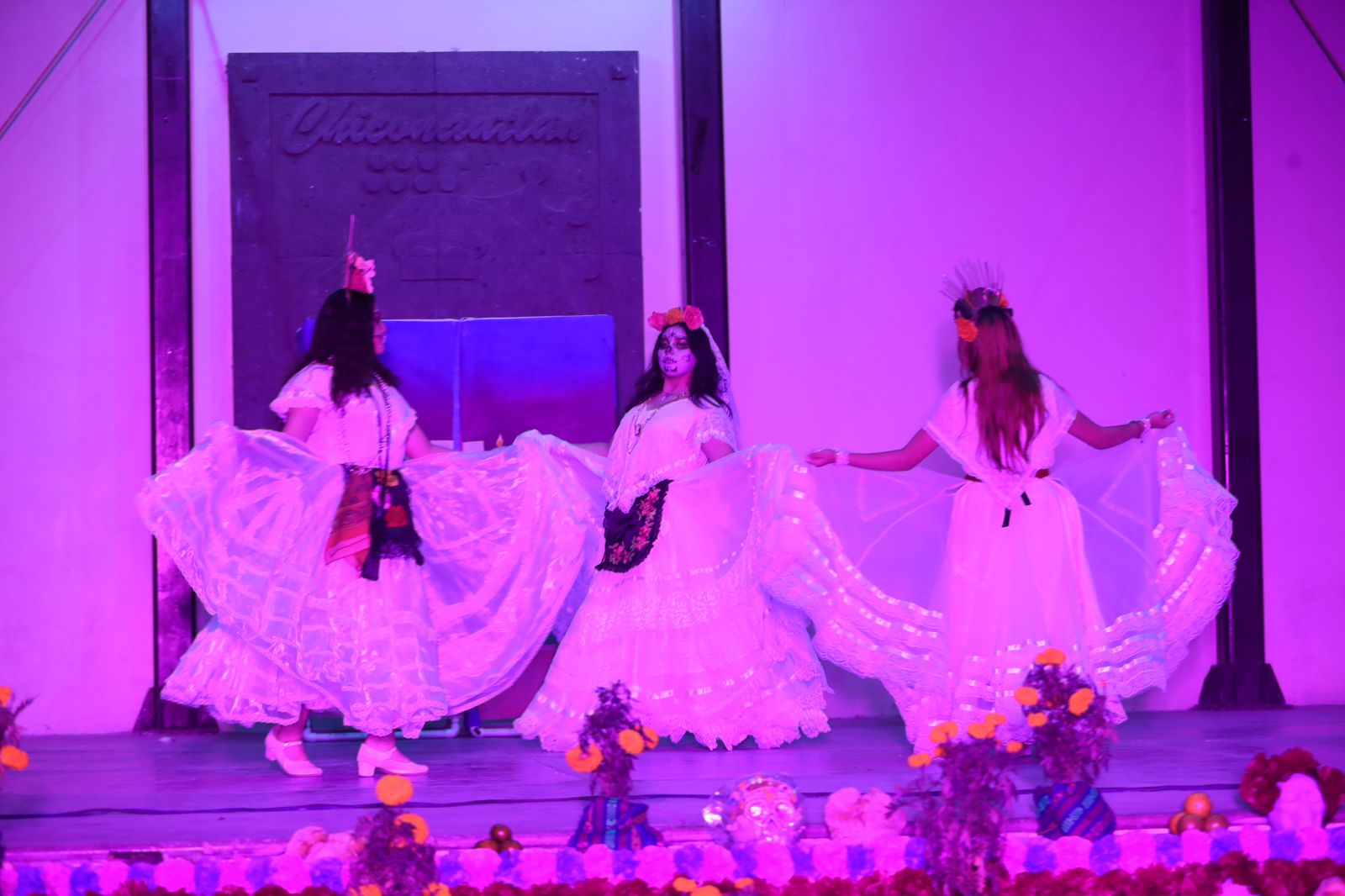 Es de destacar que las y los protagonistas de la danza prehispánica, así como del ballet folklórico y tradicional, fueron estudiantes y jóvenes de la comunidad, quienes también realizaron el recorrido de catrinas monumentales con banda de viento.
