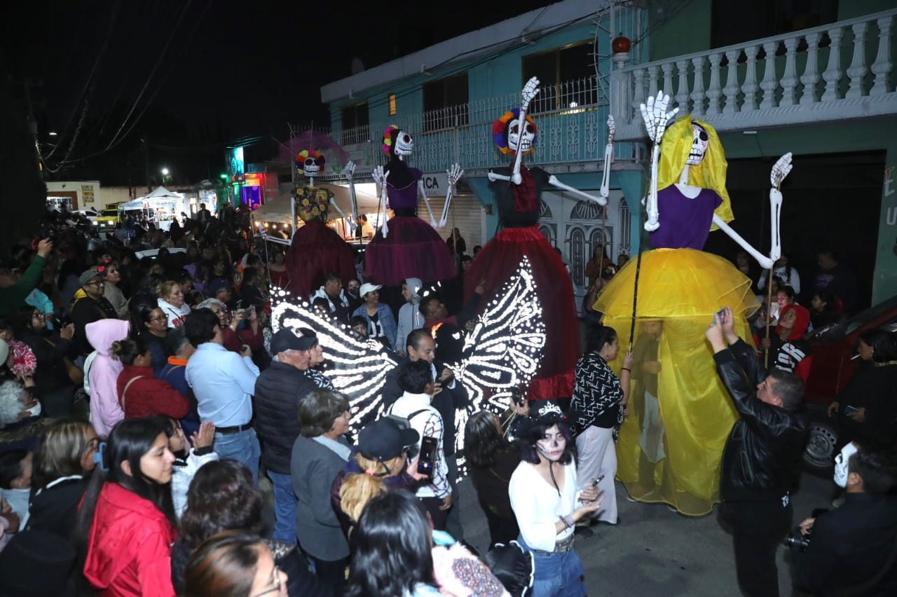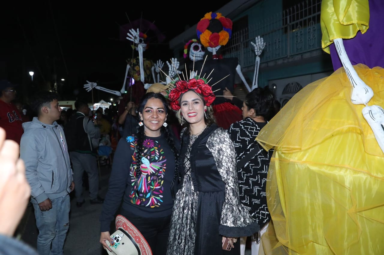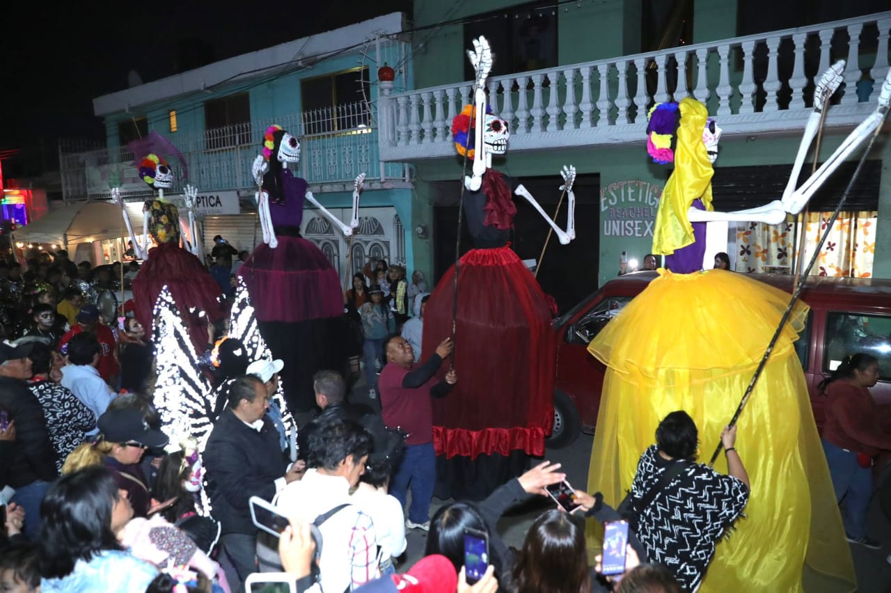 Es de destacar que las y los protagonistas de la danza prehispánica, así como del ballet folklórico y tradicional, fueron estudiantes y jóvenes de la comunidad, quienes también realizaron el recorrido de catrinas monumentales con banda de viento.