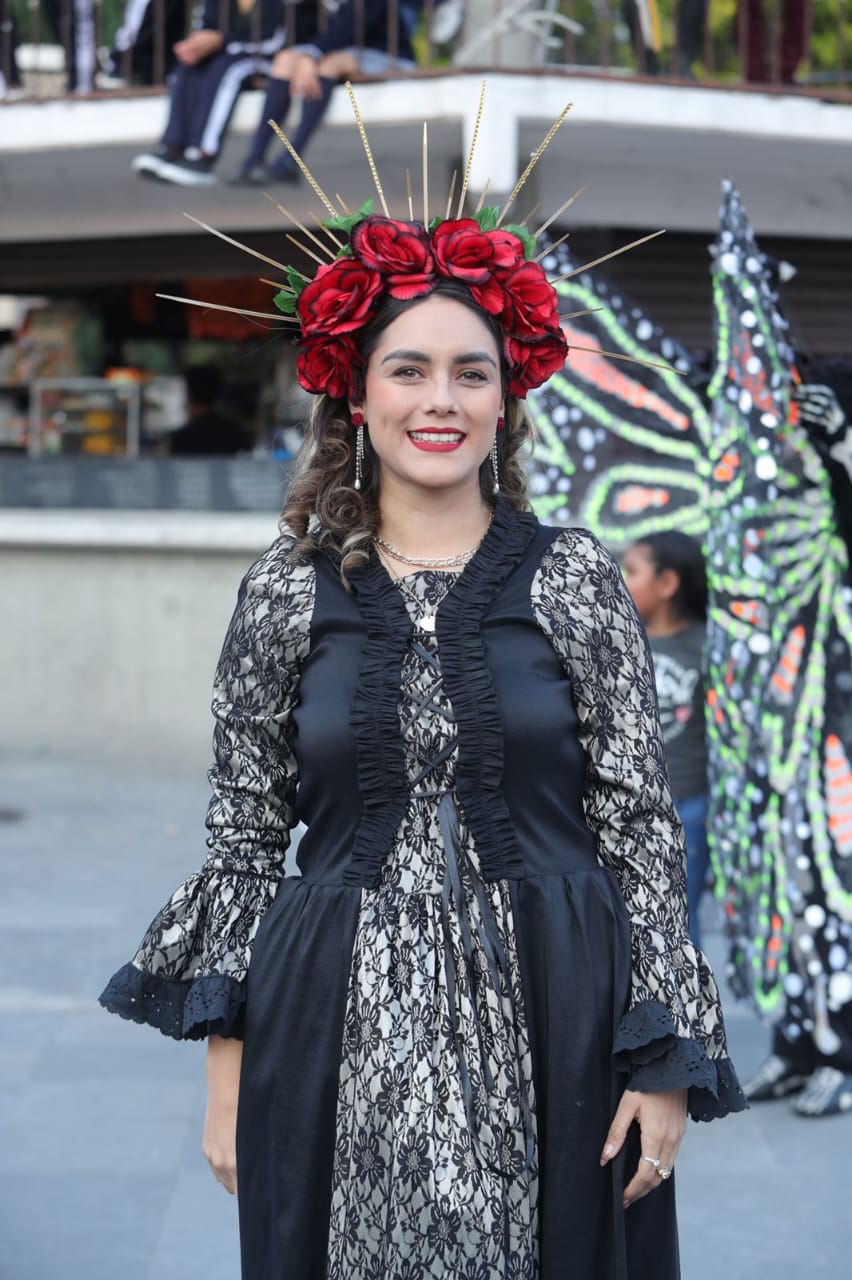 El “Canto a los Fieles Difuntos” corrió por cuenta de Yazmín Zarate; también tuvo intervención la “Banda Luz de Guadalupe” y el recorrido de catrinas monumentales con banda de viento fue coordinado por el Taller de Producción Plástica Reflexiva.