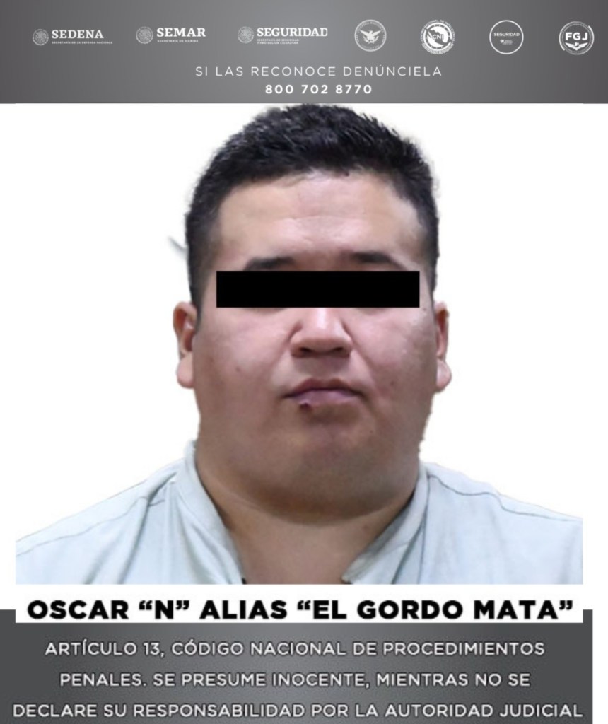 Cabe señalar que, como esta Fiscalía lo ha informado a través de diversos comunicados de prensa, resultado de detenciones y aseguramientos de armas, inmuebles, vehículos e indicios diversos, llevados a cabo desde el año 2023 por esta Institución con el apoyo de SEDENA, SEMAR, SSPC, GN, CNI y SSEM, se logró combatir y debilitar la estructura criminal y financiera de la organización con orígenes en Michoacán y en específico de la célula de alias “Pecha” y alias “El Gordo Mata”, hasta su desarticulación, tras su captura el pasado 29 de octubre.