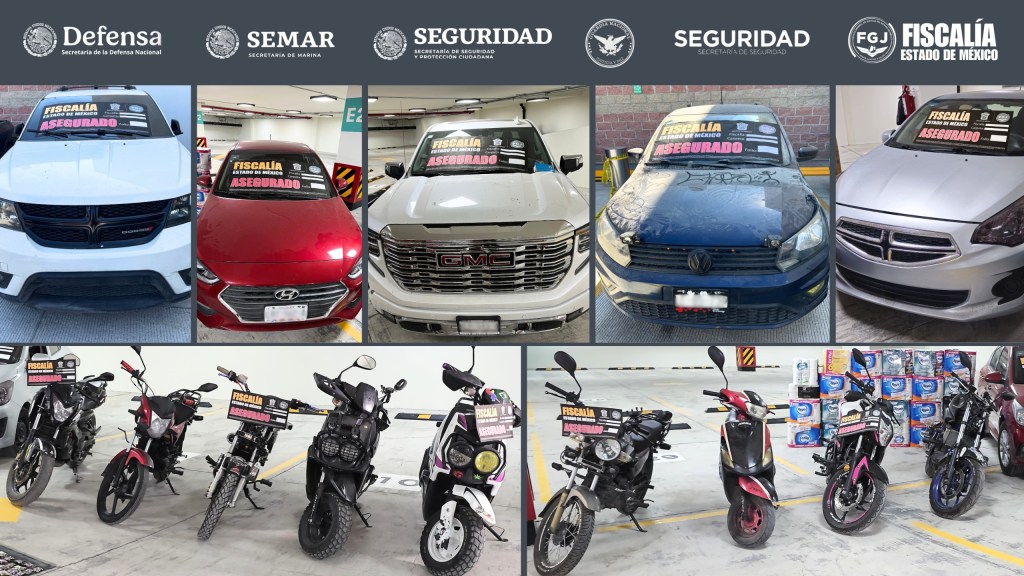 Asimismo, se aseguraron 15 vehículos, 2 inhibidores de señal, 334 cartuchos útiles de diversos calibres, 50 botellas de bebidas alcohólicas, 24 consolas de videojuego, 166 binoculares, 110 vapeadores, 47 teléfonos celulares, 5 placas vehiculares, 78 tarjetas de circulación, una caja fuerte, un contador de billetes, terminales de pago nuevas y semi nuevas, numerario, 3 troqueles y una gorra policial, además de diversa mercancía consistente en equipos de aire acondicionado, calentadores climáticos, electrodomésticos y productos de papelería y laboratorio, de los que se investiga su procedencia.