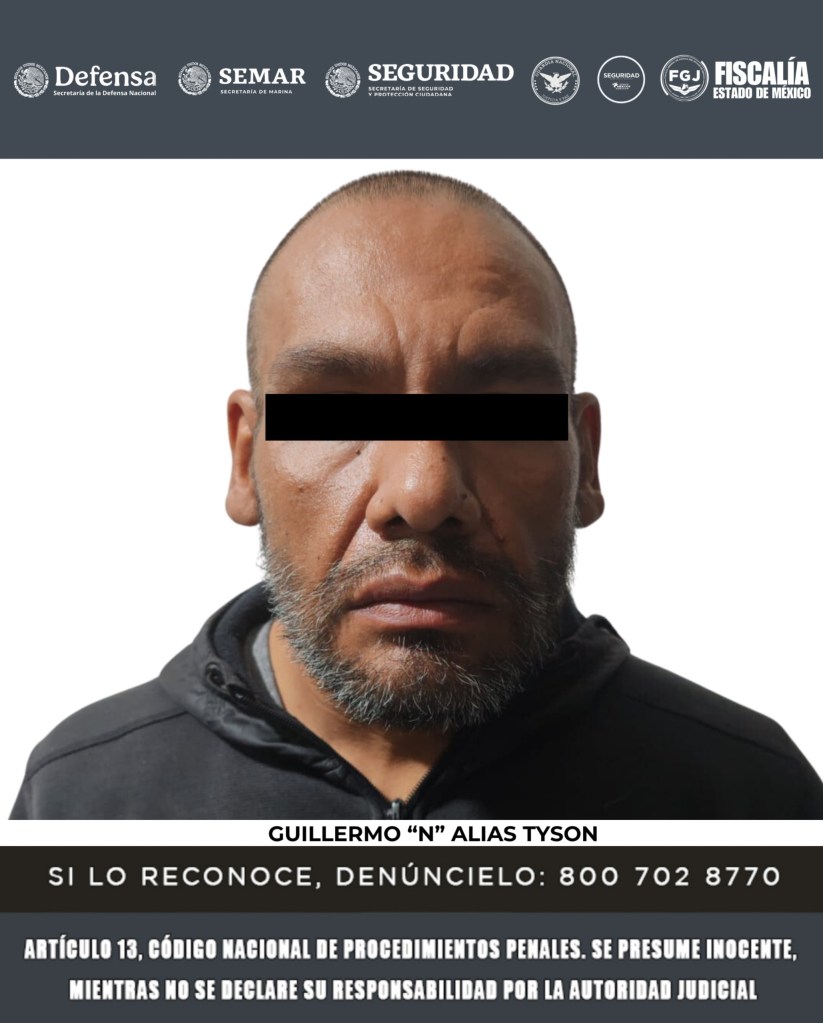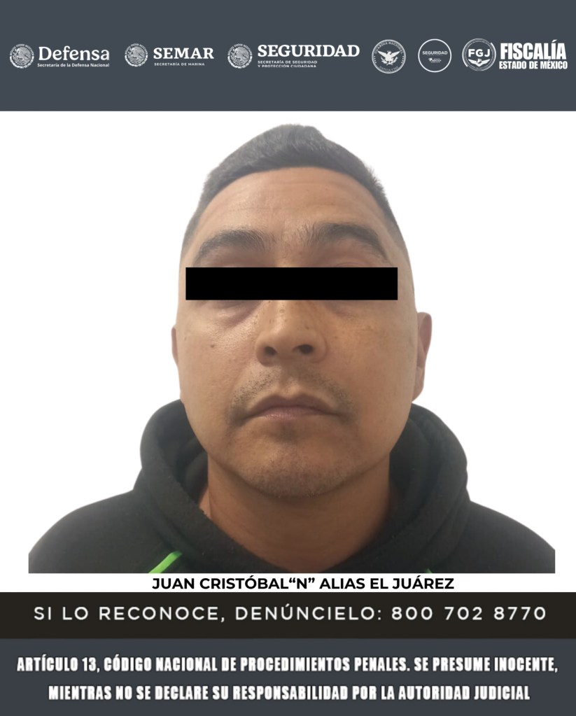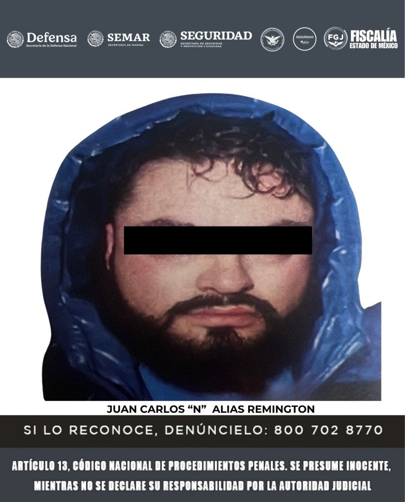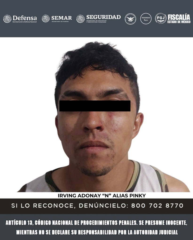 Como resultado de las acciones operativas llevadas a cabo en contra de la célula delictiva de alias “Remington” y alias “Juárez”, el 12 de noviembre pasado, DEFENSA, MARINA, SSPC, GN, Fiscalía mexiquense y SSEM, lograron la detención de (1) Christian Uriel “N” alias el “Cristian”, (2) Irvin Adonay “N” alias “Pinky” y (3) Guillermo “N” alias “Tyson”.