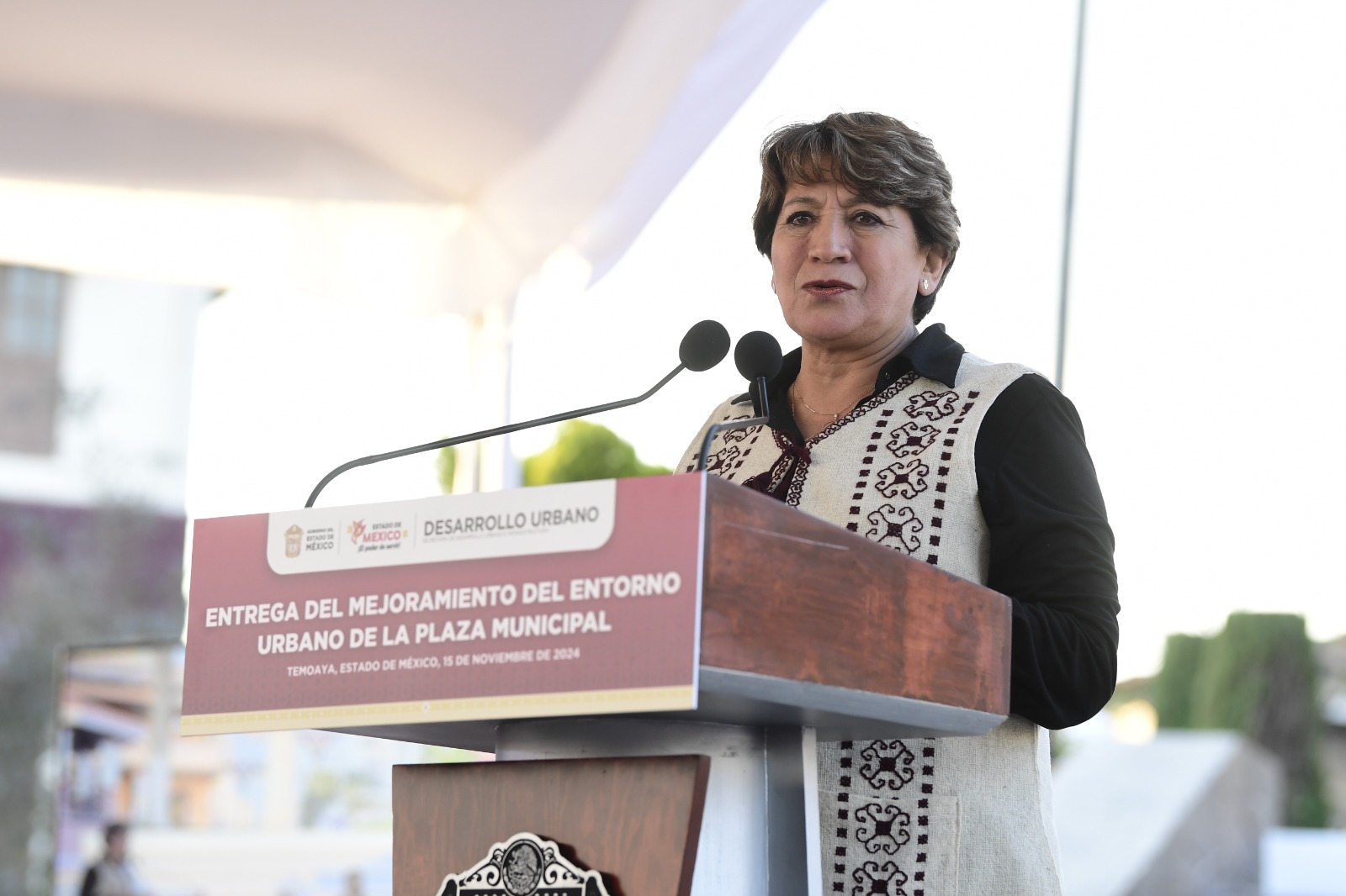 Con una inversión de 38 millones de pesos, la Gobernadora Delfina Gómez Álvarez entregó el Mejoramiento del Entorno Urbano de la Plaza Municipal de Temoaya, un espacio histórico del Estado de México; la obra generó 480 empleos y beneficiará a 105 mil 766 habitantes de la región como parte del Programa de Obra Pública 2024.
