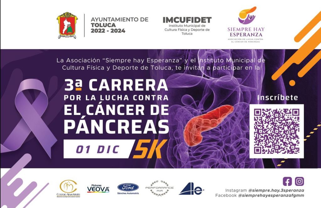 La tercera edición de la “Carrera de Lucha contra el Cáncer de Páncreas” se verificará el domingo 1 de diciembre a las 08:00 horas de la mañana en las inmediaciones del Estadio Universitario Alberto «Chivo» Córdoba, ubicado en la Ciudad Universitaria de Toluca, capital del Estado de México.
