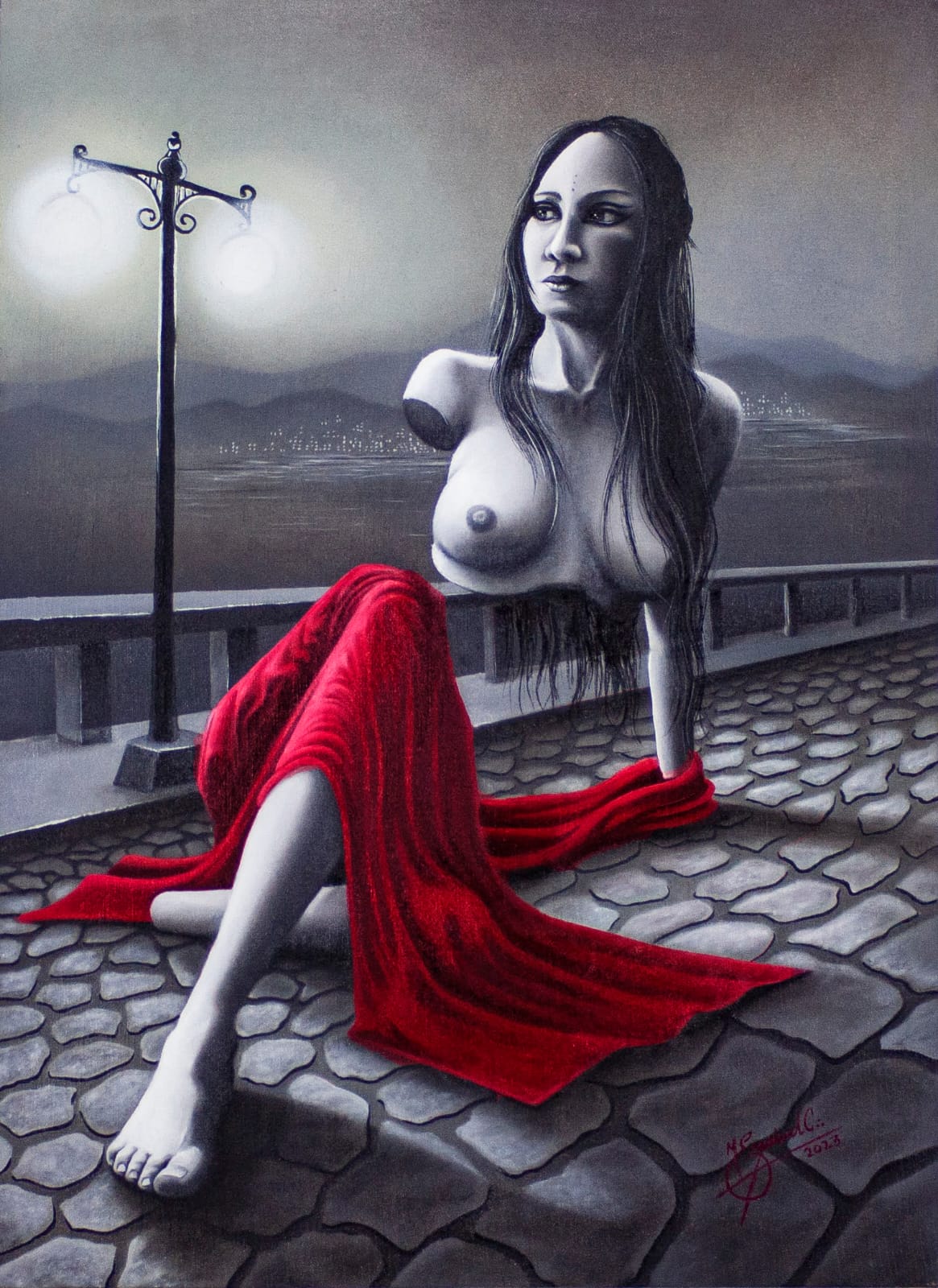 Con una propuesta que coquetea con el hiperrealismo pero que se ancla en lo simbólico, Esquivel no sólo retrata cuerpos, sino experiencias interiores. Su pintura invita al silencio, a la pausa, al encuentro con lo esencial.