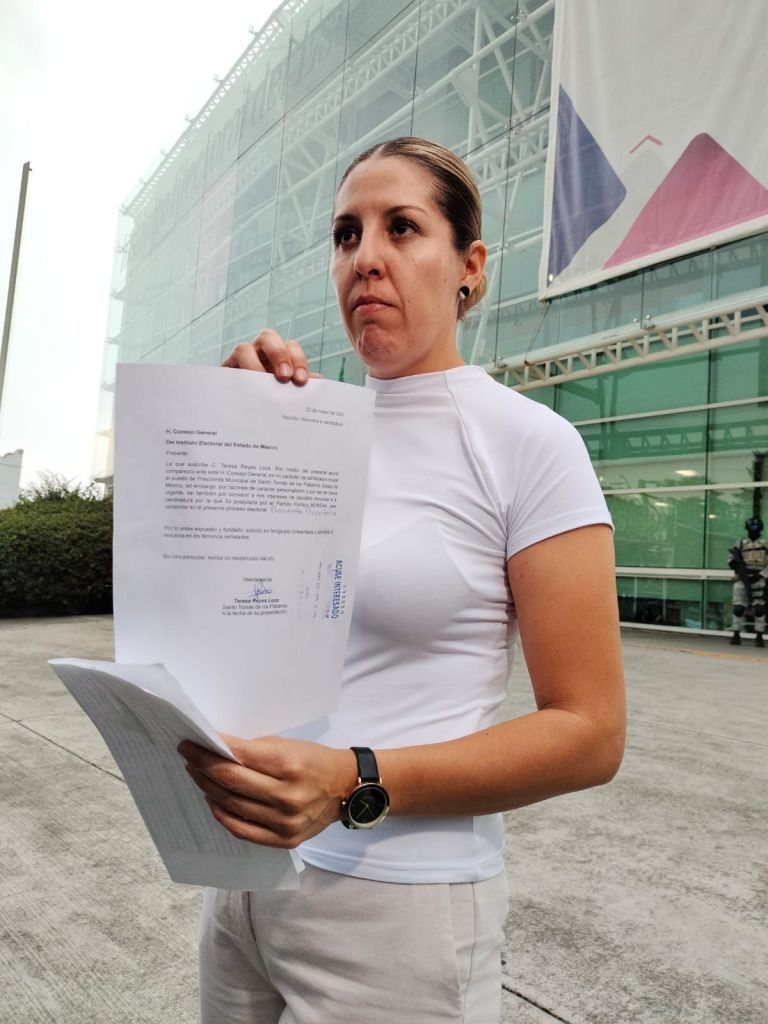 “Por medio del presente comparezco ante este Consejo en mi cargo de candidata a ocupar el cargo de presidenta a Santo Tomás de los Plátanos, por razones de carácter personalísimo, y por ser causa urgente, así como también convenir a mis intereses, he decidido renunciar a la candidatura para el cual fui postulada por Morena para contender como presidenta propietaria”.