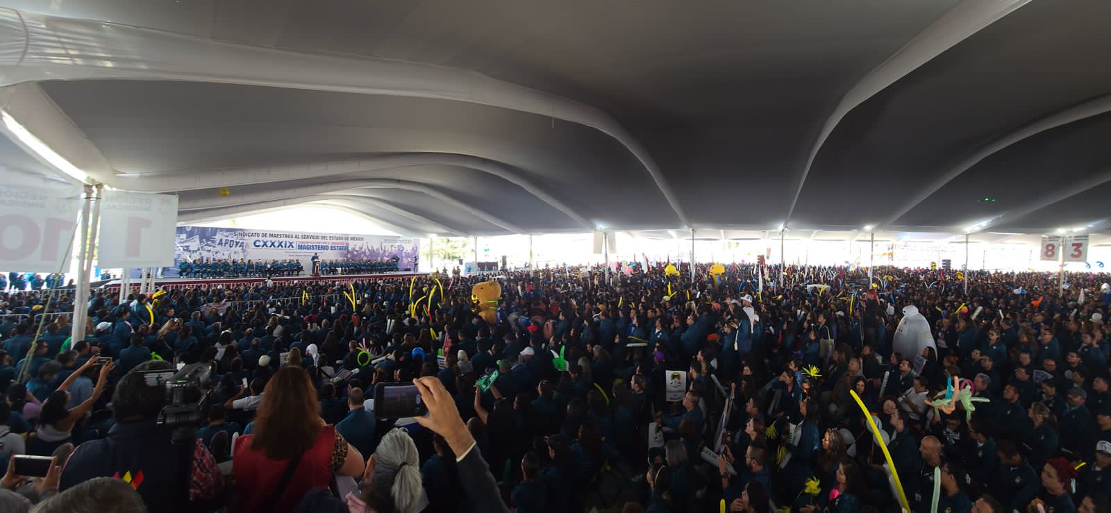 Durante la Concentración por el Bienestar del Magisterio Estatal, ante más de 13 mil afiliados, el Secretario General insistió en procesos de basificación justos y atención médica digna del gremio educador.
