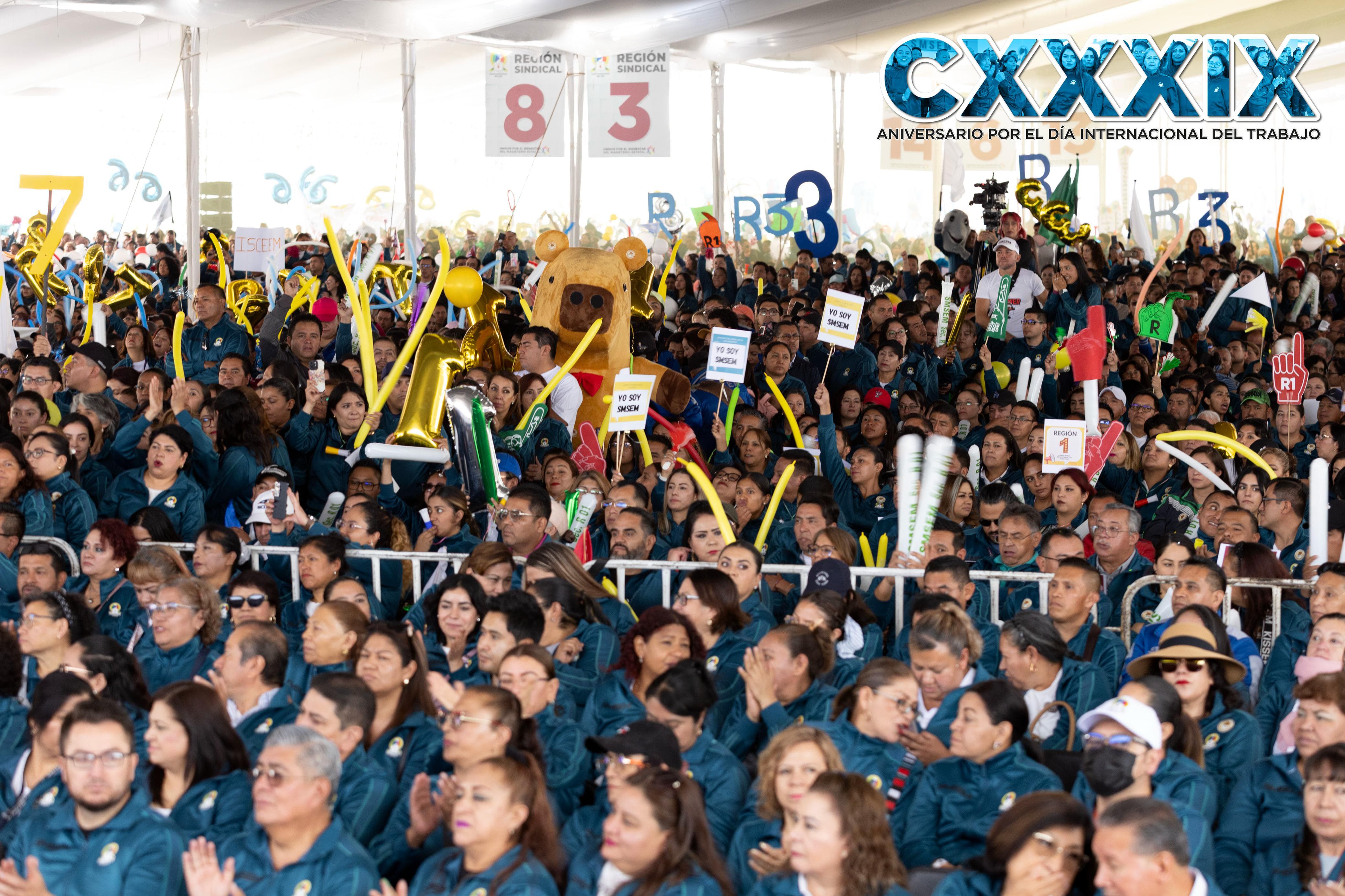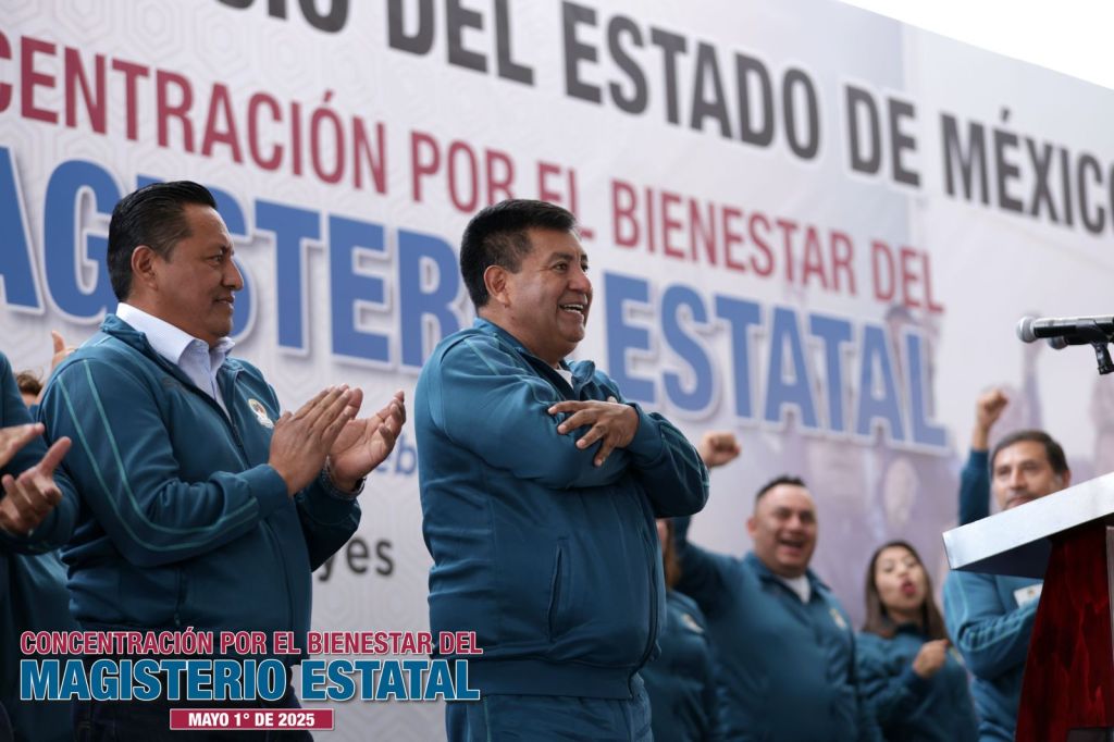 Toluca, Estado de México, 1 de mayo de 2025. En el marco de la Concentración por el Bienestar del Magisterio Estatal, con motivo del 139 Aniversario del Día Internacional del Trabajo, el Secretario General del Sindicato de Maestros al Servicio del Estado de México (SMSEM), Jenaro Martínez Reyes, anunció que el pago de la Gratificación por el Día del Maestro ya está acordado dentro de la negociación del Pliego Petitorio de Asuntos Económicos 2025 y que se realizará de forma oportuna en la primera quincena de mayo.