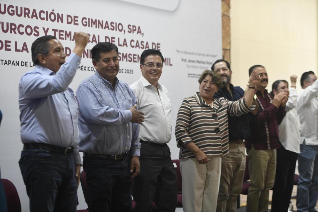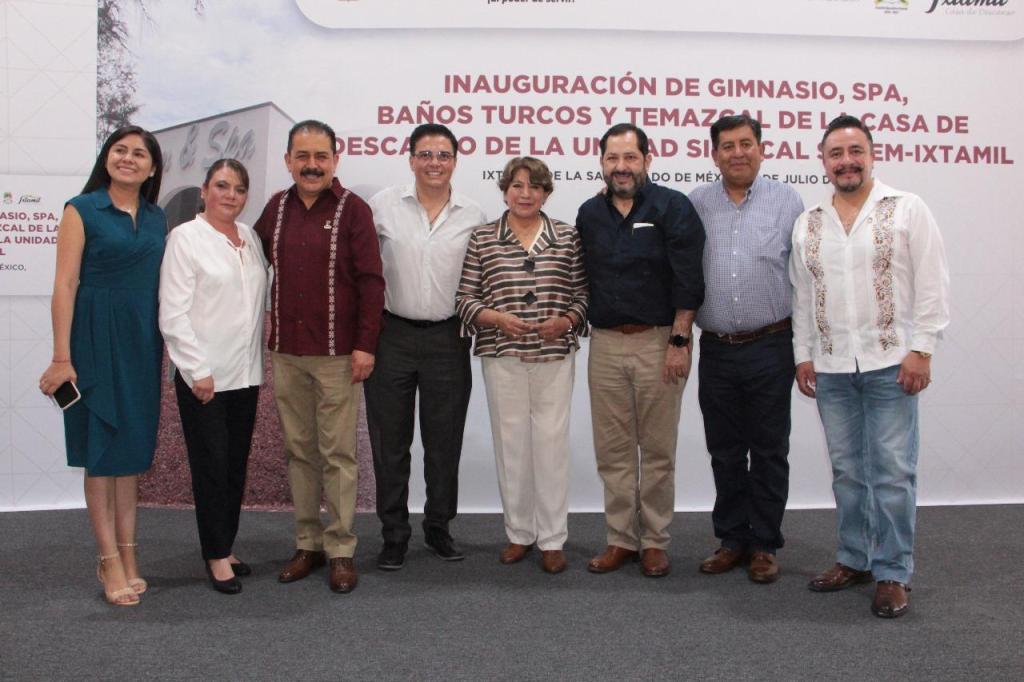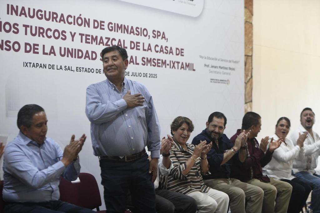Durante la inauguración del spa, gimnasio, baño turco y temazcal, dentro de la Casa de Descanso de la Unidad Sindical SMSEM-Ixtamil, la Gobernadora Delfina Gómez Álvarez anunció la firma del Convenio de Sueldo y Prestaciones 2025 con el Sindicato de Maestros al Servicio del Estado de México (SMSEM).