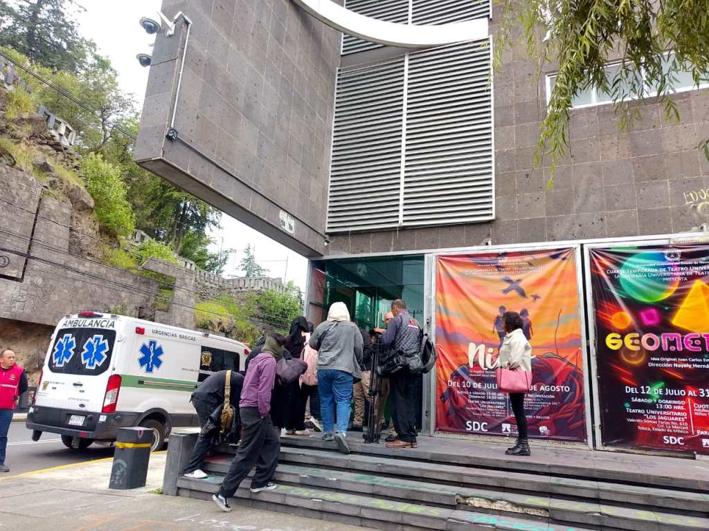 En las dos últimas líneas de butacas del teatro estaban los representantes de medios de comunicación, medios tradicionales y digitales, mientras que el acceso al teatro lo resguardaba personal de Protección Civil de la Universidad.