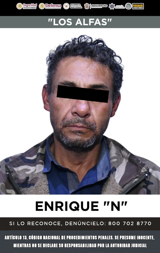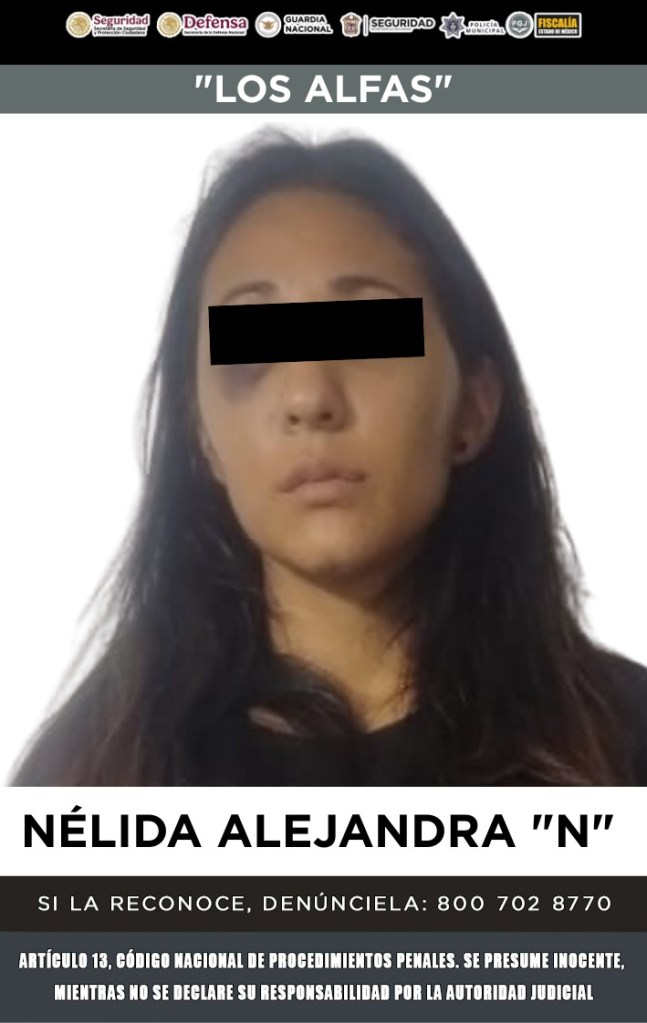 Derivado de una primera acción mediante la cual fue detenida Nélida Alejandra “N”, pareja sentimental de alias “El Alfa”, investigada por los delitos de encubrimiento por receptación, portación de arma prohibida y uso indebido de uniformes e insignias, elementos de las corporaciones referidas llevaron a cabo movilizaciones tanto en los municipios de Toluca y Zinacantepec, donde, de acuerdo con investigaciones, era la zona de operación de este grupo criminal.