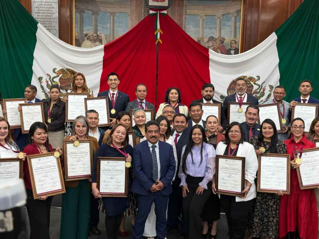 En el plano legislativo, el Secretario General del SMSEM asistió a la sesión solemne en la que la LXII Legislatura entregó el Pergamino y la Medalla al Reconocimiento Docente 2025 a 36 maestras y maestros destacados en distintas categorías, un acto que, dijo, refleja la calidad y compromiso del magisterio mexiquense.
